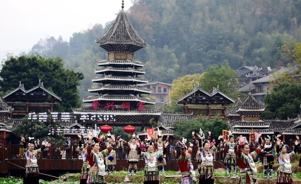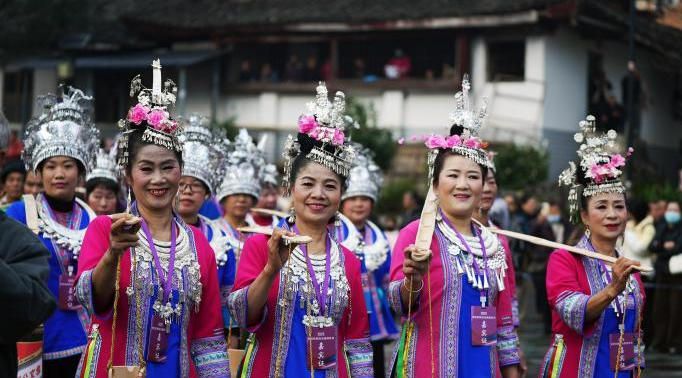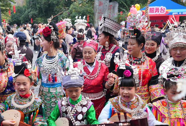 12月20日,贵州省黎平县肇兴侗寨,苗族同胞与侗族同胞一起欢度侗年。(中新网)