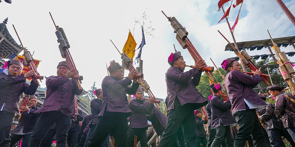 12月20日,贵州黎平举办庆祝侗年系列活动,吸引各地游客与侗族民众欢聚一堂,载歌载舞,欢庆侗年。(中国央视网)