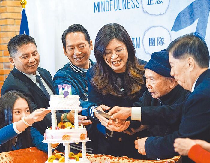 国民党党內有立委吴宗宪(左一)、宜兰县议会议长张胜德(左二)争取宜兰县长提名,党主席郑丽文(左三)20日赴宜兰出席党庆,并与资深党员等人一起切蛋糕。(图/台北中时新闻网)
