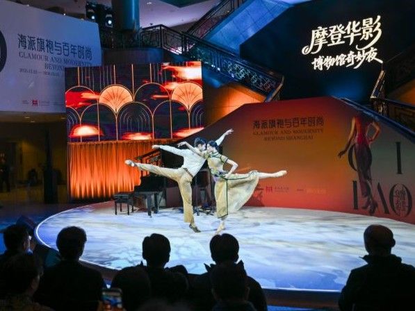 图为12月22日,演员在“摩登华影:海派旗袍与百年时尚”博物馆奇妙夜活动上表演。(新华社)
