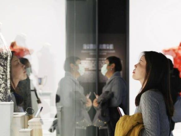 图为12月22日,观众近距离欣赏展品。(上海东方网)