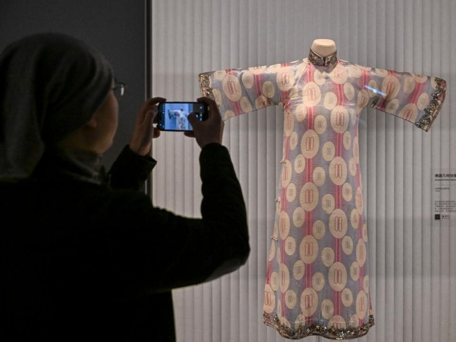 图为12月22日,观众在“摩登华影:海派旗袍与百年时尚”预展上拍摄展品。(新华社)