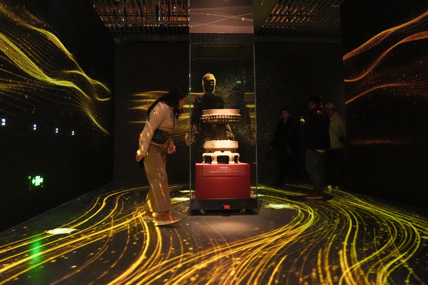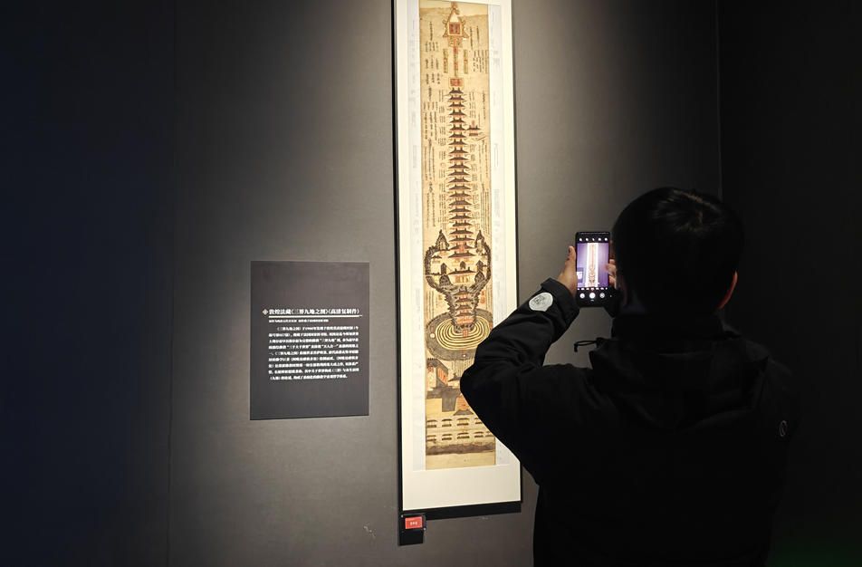 12月22日,“既往未来——小西天文物撷珍与悬塑艺术特展”在位于北京的国家图书馆(国家典籍博物馆)举办开幕式。展览首次系统展示了山西隰县小西天珍贵文化遗产,同时还有数字化展项。山西省隰县小西天原名千佛庵,因其保存的1978尊明代塑像而闻名。展览主题“既往未来”取自《永乐北藏》,寓意“以远见超越未见”,也象征着“功在当代,利在千秋”的文化遗产保护理念。图为观众正在参观展览。(人民网)
