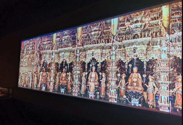 观众正在展厅内欣赏数字小西天悬塑。(人民网)