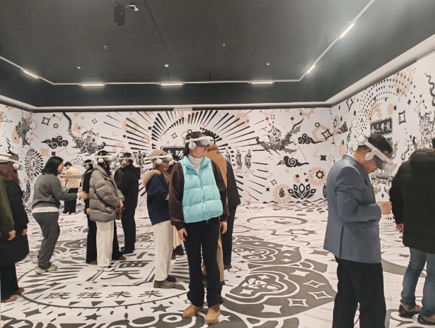 游客体验小西天悬塑艺术主题VR大空间。(中国旅游新闻网)