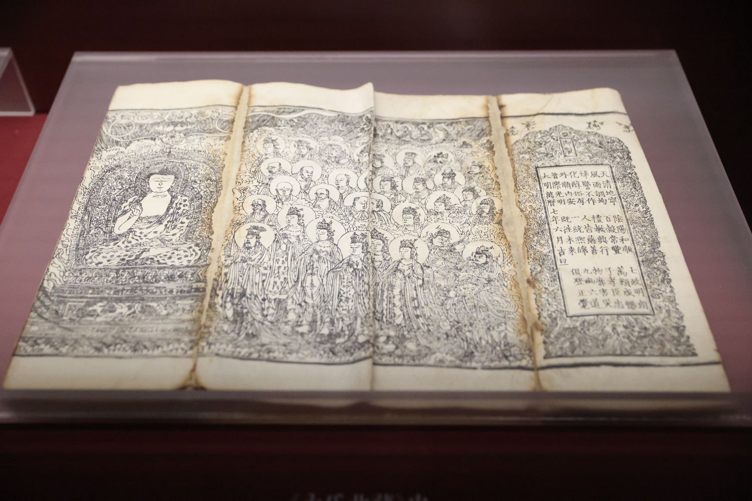图为首次公开展出的《永乐北藏》史一万善同归卷第一。(中新社)