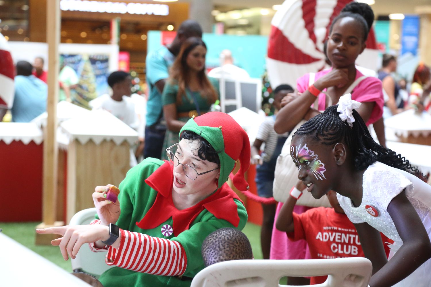 图为12月20日,南非约翰内斯堡一座商场内推出圣诞主题活动,南非儿童体验面部彩绘。(中新社)