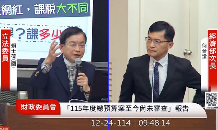 24日,国民党立委赖士葆质询台“经济部政务次长”何晋沧。(图/台立法机构频道截图)