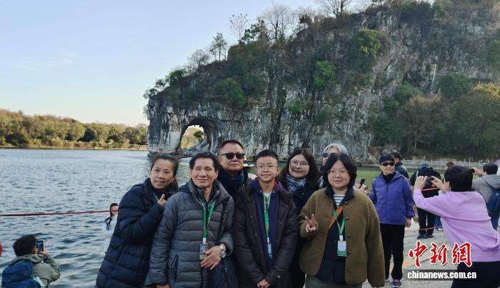 图为香港游客在桂林城徽象鼻山合影。欧惠兰摄
