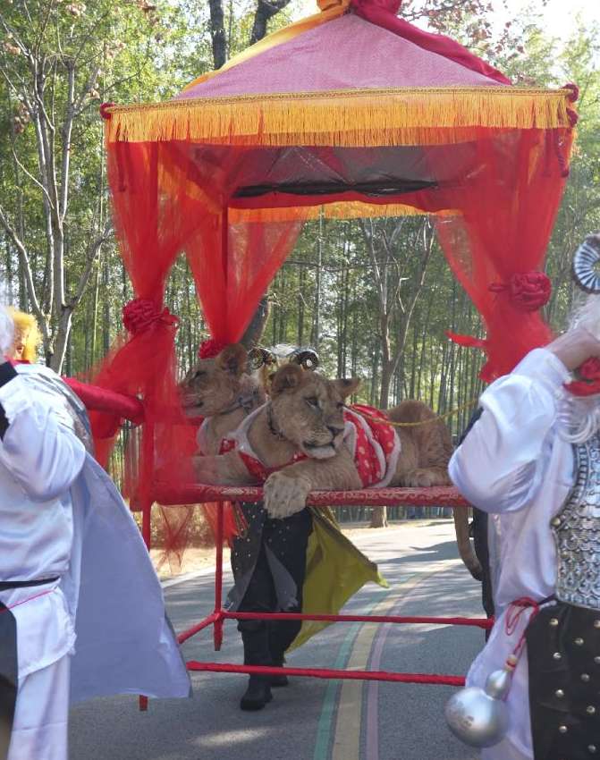 “大王叫我来巡山” 安徽一动物园狮子乘轿引关注