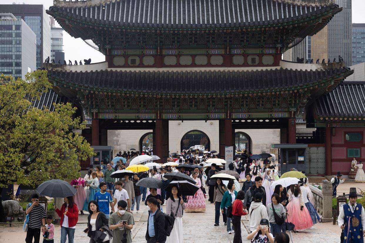 图为游客在韩国首尔的景福宫参观游览。(图/新华社)