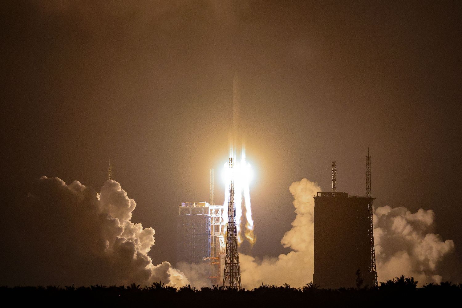 北京时间12月20日20时30分,中国在文昌航天发射场使用长征五号运载火箭,成功将通信技术试验卫星二十三号发射升空,卫星顺利进入预定轨道,发射任务获得圆满成功。该卫星主要用于开展多频段、高速率卫星通信技术验证。图为长征五号运载火箭点火升空。(图/中新社)