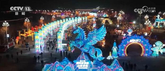 走进灯会现场,五大主题灯区、百余组大型主题灯组精彩亮相,高达13米的“天马腾霄”灯组气势恢宏,通过灯光造型现场还原,再配合数字孪生技术打造的精准光影效果,柔美呈现灵动姿态,为游客带来身临其境的沉浸式体验。