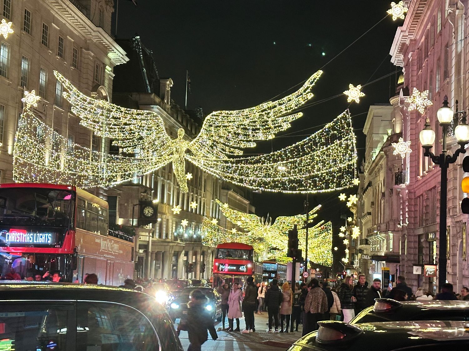 图为12月27日,英国伦敦市中心皮卡迪利广场附近行人如织,街道上亮起多彩灯饰,当地居民在璀璨灯光中迎接新年。(中新社)