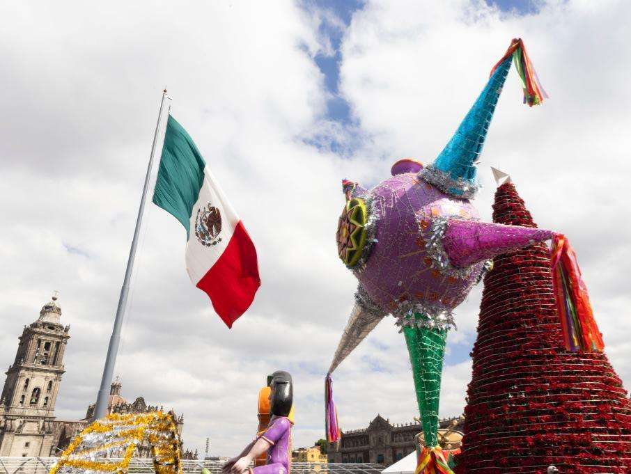 图为12月30日,墨西哥首都墨西哥城,宪法广场拍摄的节日装饰。(新华社)