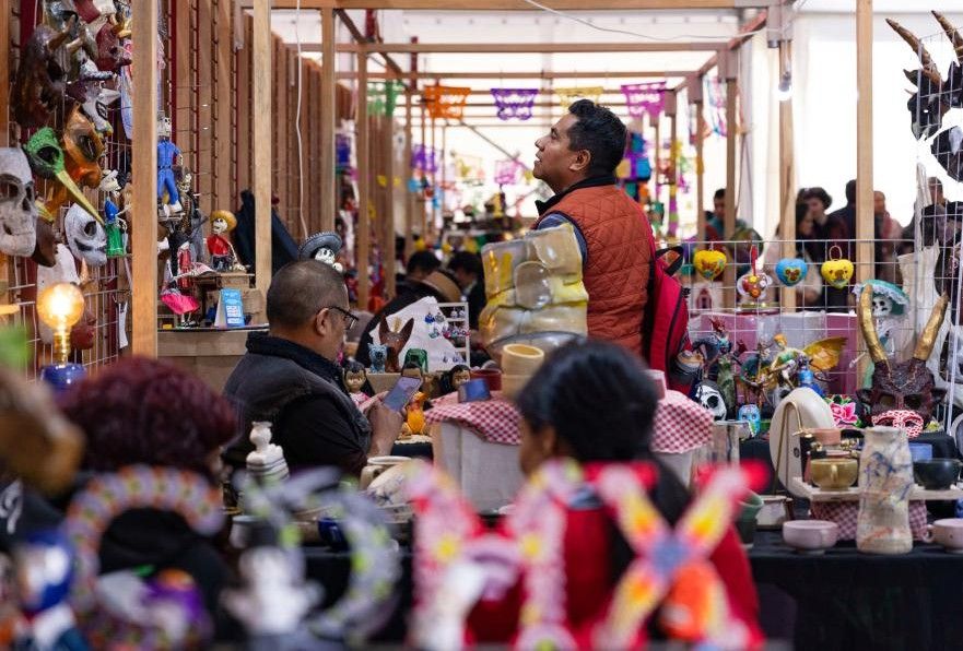 图为12月30日,墨西哥首都墨西哥城,人们在手工艺品摊位选购商品。(新华社)