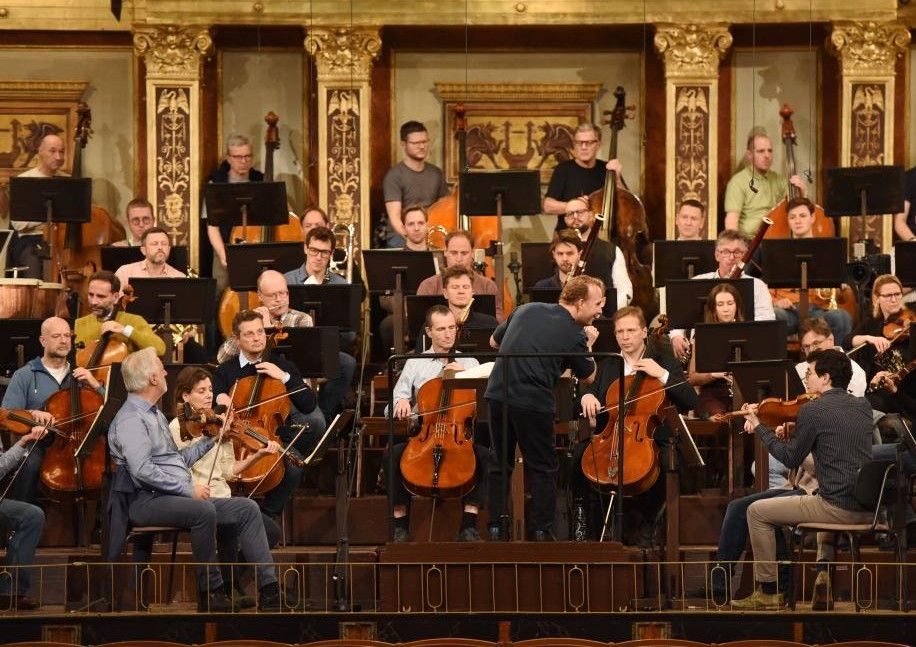 图为12月29日,奥地利维也纳,维也纳爱乐乐团在金色大厅为2026年维也纳新年音乐会进行彩排。(新华社)