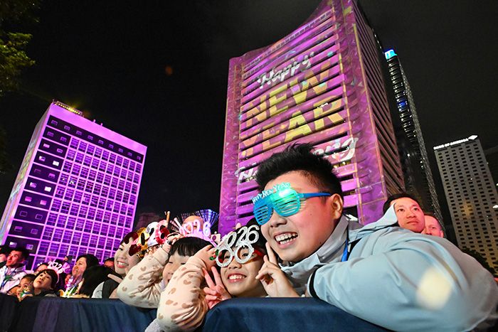 2025年12月31日晚,民众在香港中环迎接2026年的到来。(图/中新社)
