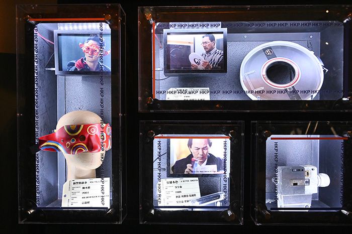 图为“证物房”内展出的《英雄本色》《新警察故事》等多部港产警匪电影中出现的道具。(图/中新社)