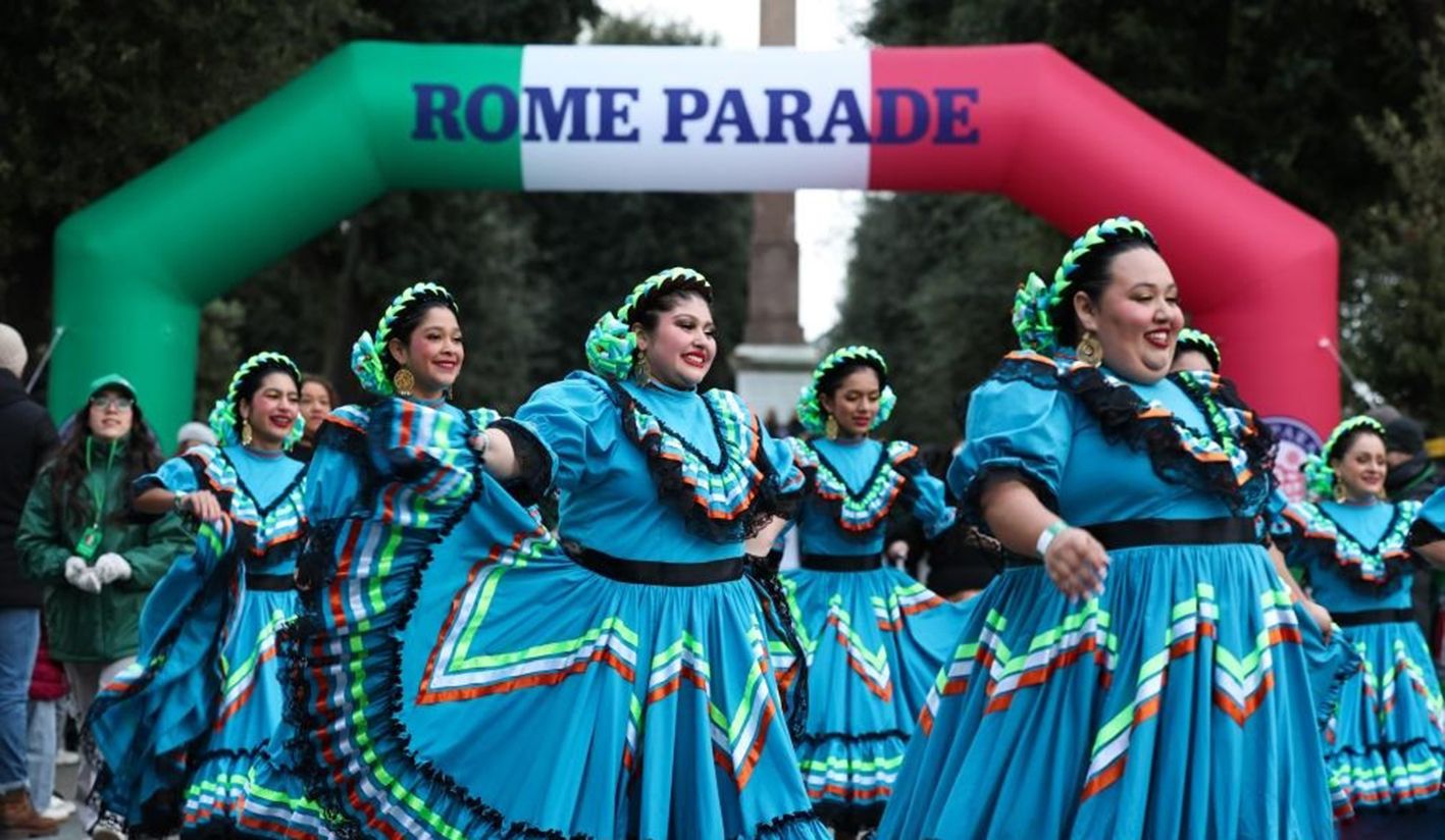 1月1日,在意大利罗马,演员在新年游行庆祝活动中表演墨西哥舞蹈。(新华社)