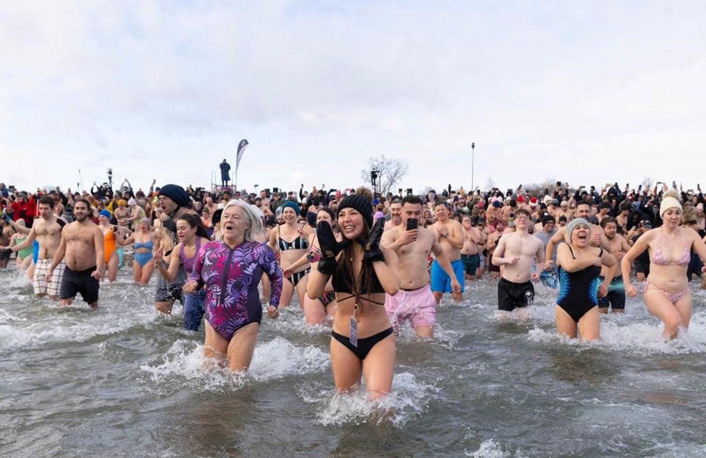 1月1日,人们在加拿大多伦多的安大略湖边参加“北极熊冬泳”活动,欢庆新年。(新华社)