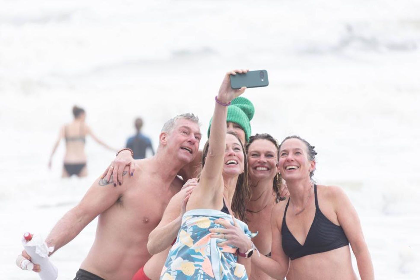 1月1日,人们在荷兰布卢门达尔参加冬泳活动时自拍。元旦当天入海冬泳是荷兰人迎接新年的传统。(新华社)