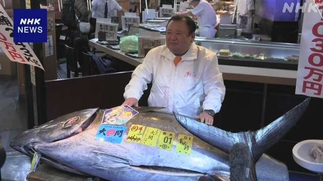 日本东京丰洲市场举行新年首次拍卖 蓝鳍金枪鱼以5.103亿日元创历史最高成交价