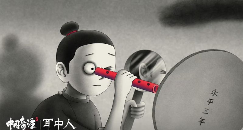 《耳中人》奇趣诡谲。导演胡睿又一次向《聊斋志异》找寻灵感。《耳中人》脱胎于卷一中的同名篇章,又跳出传统叙事框架,发展为探讨内心欲望的现代寓言。胡睿说,在搜集创作素材时关注到了“傀儡戏艺人”这一传统形象,“旧时有一种艺人住在戏台里,表演与生活合一,试图用戏剧解决一切问题”。受之启发,动画中的主人公谭秀才也被设计成这样“疯魔”的人物,借助戏曲舞台与耳中人周旋。