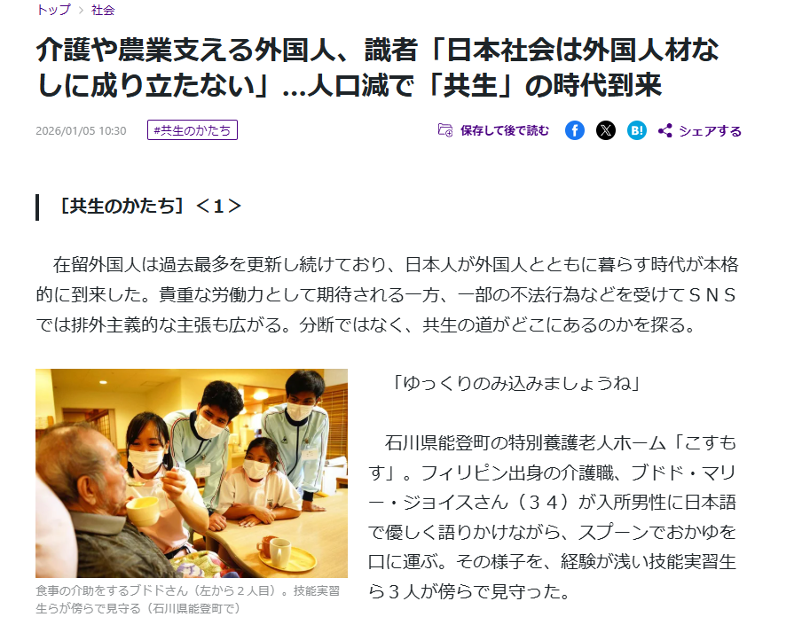 外国人才作为重要劳动力备受期待,但部分人的违法行为也引发社交媒体上排外主义言论蔓延。对此,我们应该探索的并不是分裂行径,而是去追寻共同生活的道路。