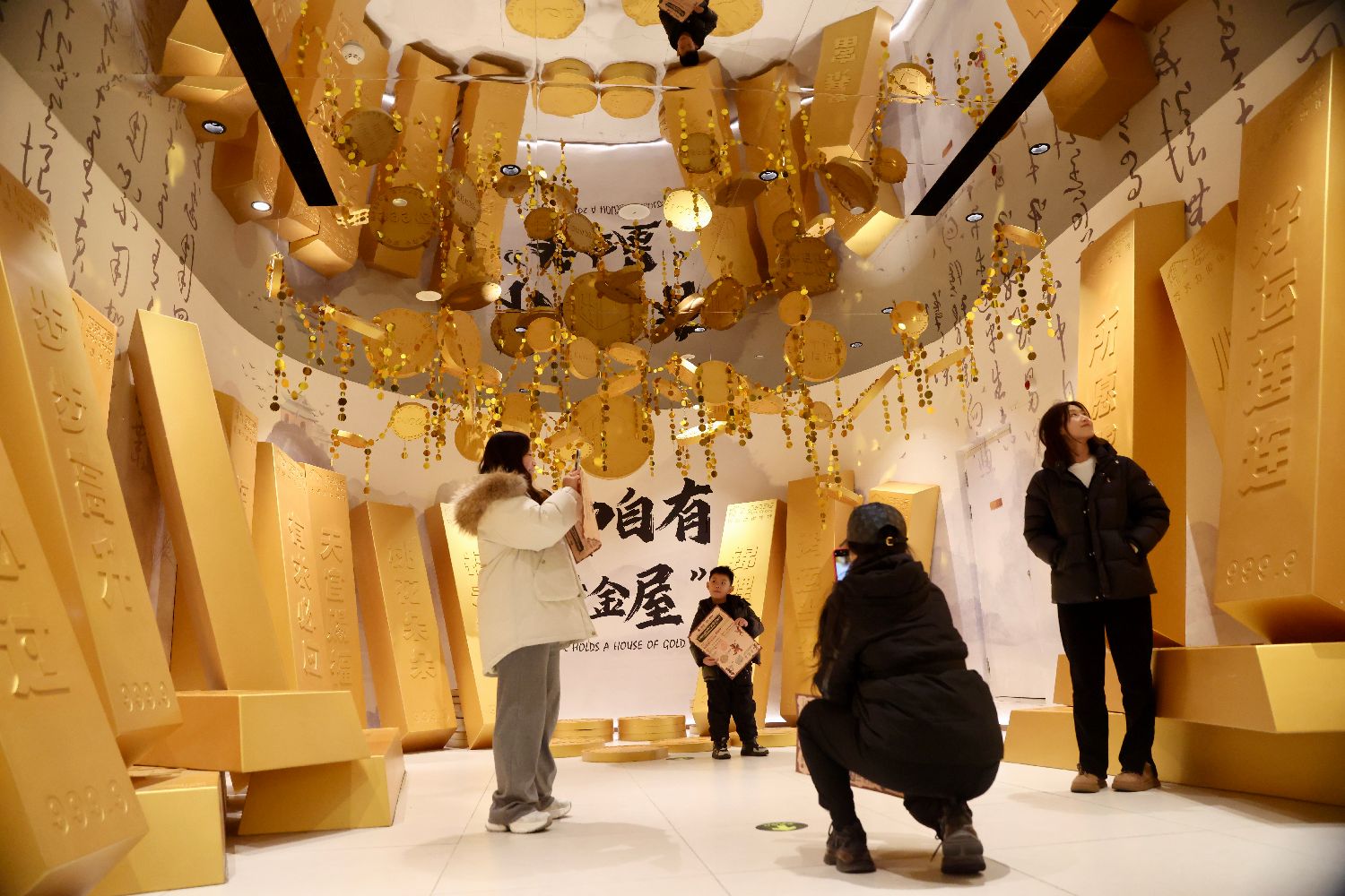 1月4日,市民在北京前门北京坊的巧克力博物馆参观金币巧克力艺术装置。北京坊的巧克力博物馆于近日正式向公众开放,该馆历经三年精心筹备,总耗巧克力近50吨。馆内巧克力展品既有中国龙、长城、北京城中轴线、盘龙藻井等极具代表性的城市文化地标,还有以巧克力复刻的多幅中西方艺术名作,吸引了众多游客前来参观打卡,近距离感受巧克力与艺术融合的独特魅力。(中新社)