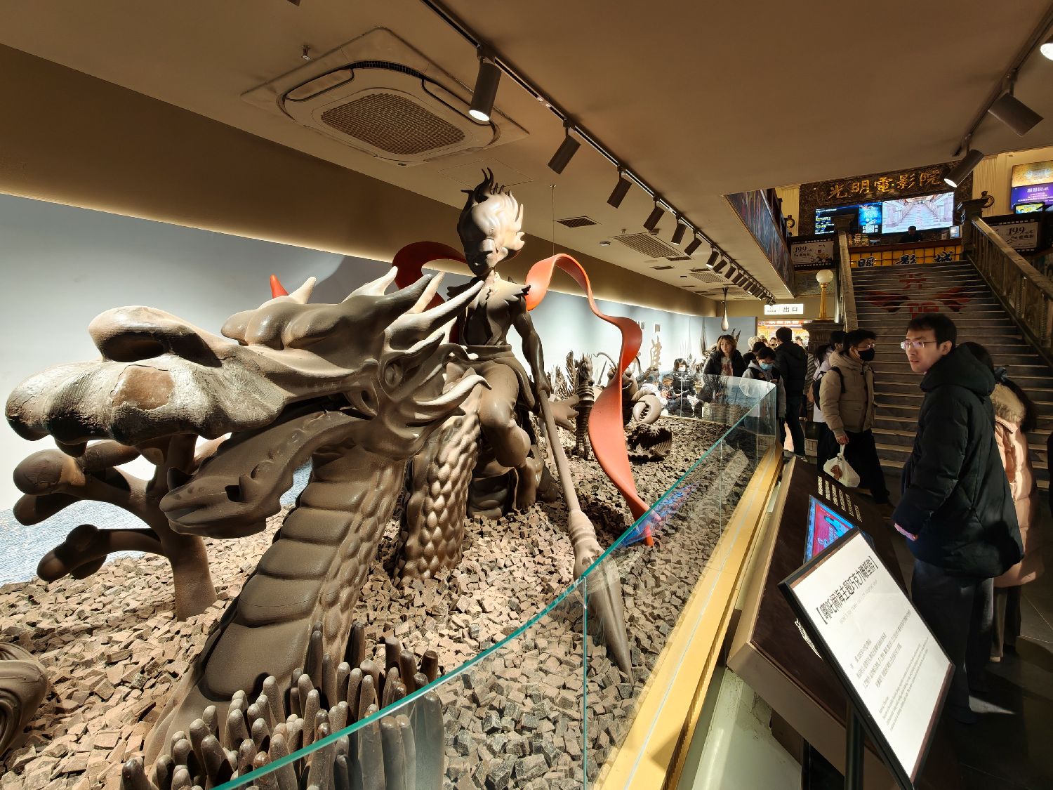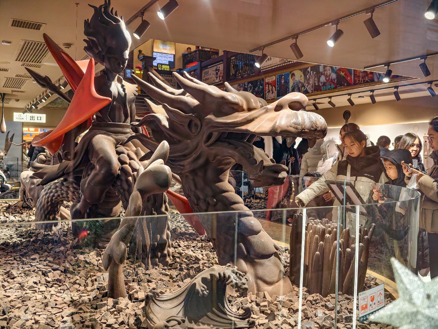 1月2日,天津,市民和游客在巧克力博物馆参观哪吒闹海雕塑。(中新社)