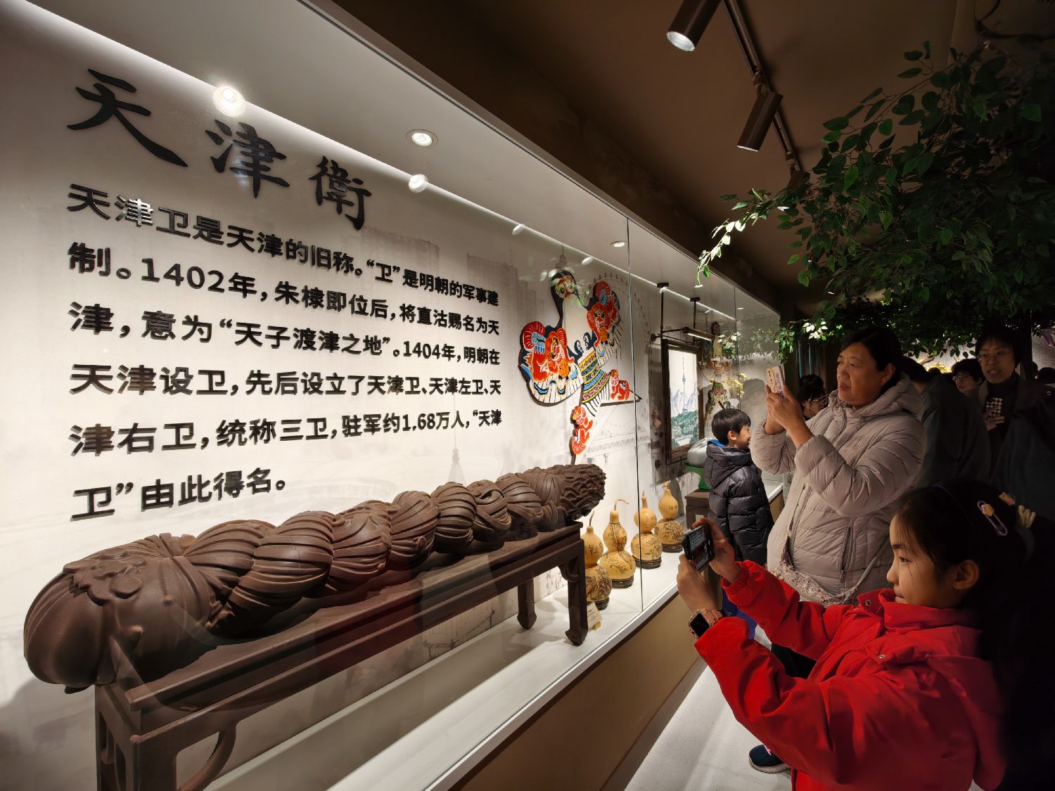 1月2日,天津,市民和游客在巧克力博物馆参观津城地标群雕塑。(中新社)