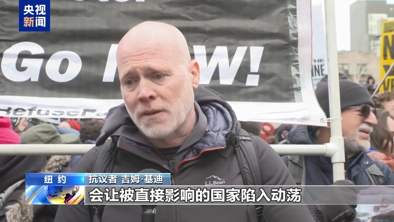 抗议者吉姆·基迪:当这种帝国主义式的接管发生时,会让被直接影响的国家陷入动荡,还会对周边国家造成不稳定的外溢影响,有时甚至会导致内战,带来大量痛苦与灾难。