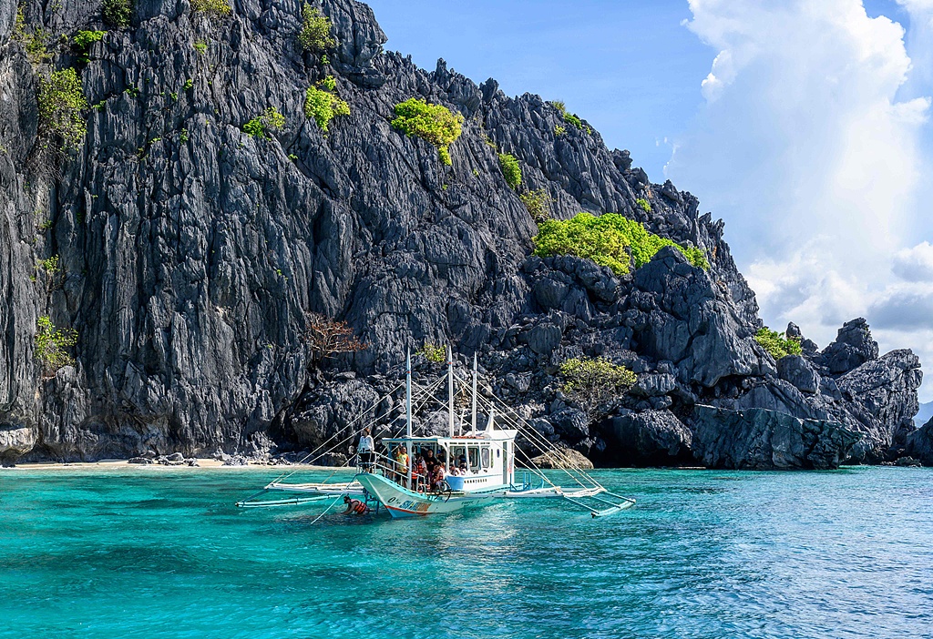 2025年12月2日,菲律宾巴拉望省,一艘旅游船停泊在爱妮岛海岸附近。(视觉中国)