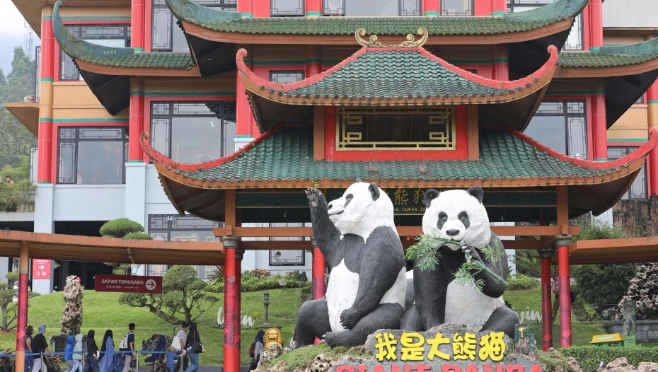 这只大熊猫宝宝于2025年11月27日出生在位于西爪哇省茂物县的野生动物园,父母是旅居印尼的大熊猫“彩陶”和“湖春”。印尼总统普拉博沃为大熊猫宝宝取名“萨特里奥·维拉塔马”,昵称“里奥”。“里奥”的诞生,填补了印尼大熊猫人工繁育的历史空白,标志着中印尼大熊猫保护合作取得实质性成果。图为当地时间1月6日,印度尼西亚西爪哇省茂物野生动物园,大熊猫“彩陶”吸引游客。(中新社)