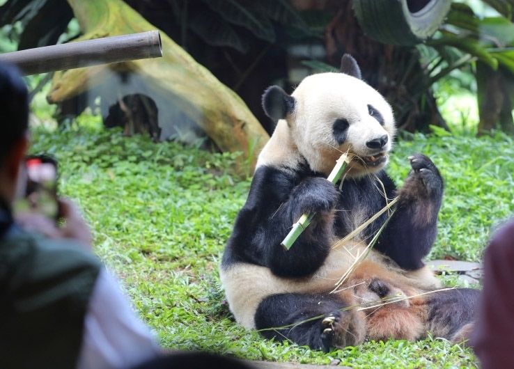当地时间1月6日,印度尼西亚西爪哇省茂物野生动物园,大熊猫“彩陶”吸引游客。(中新网)