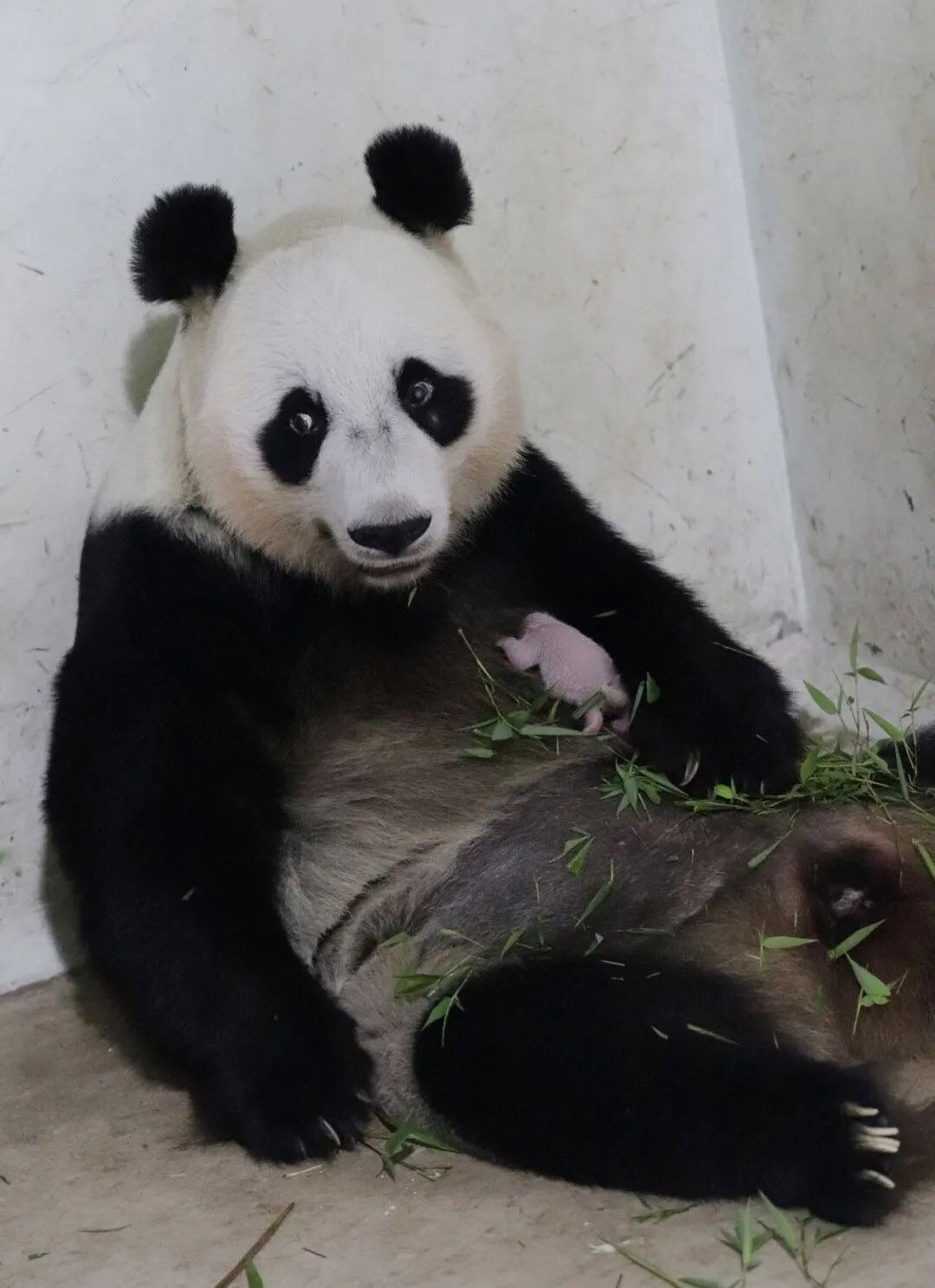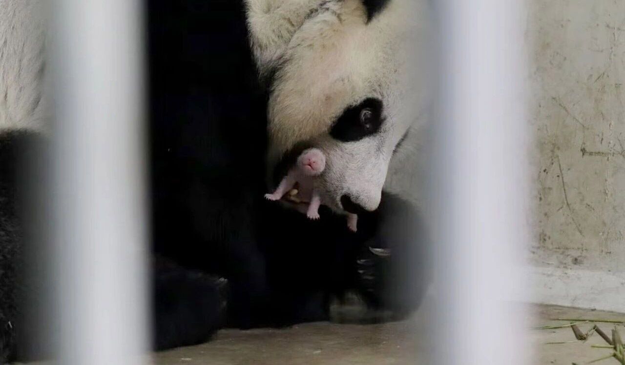 当地时间2025年11月27日17时31分,中国旅居印度尼西亚8年的大熊猫“湖春”产下首只幼崽。(北京央广网)