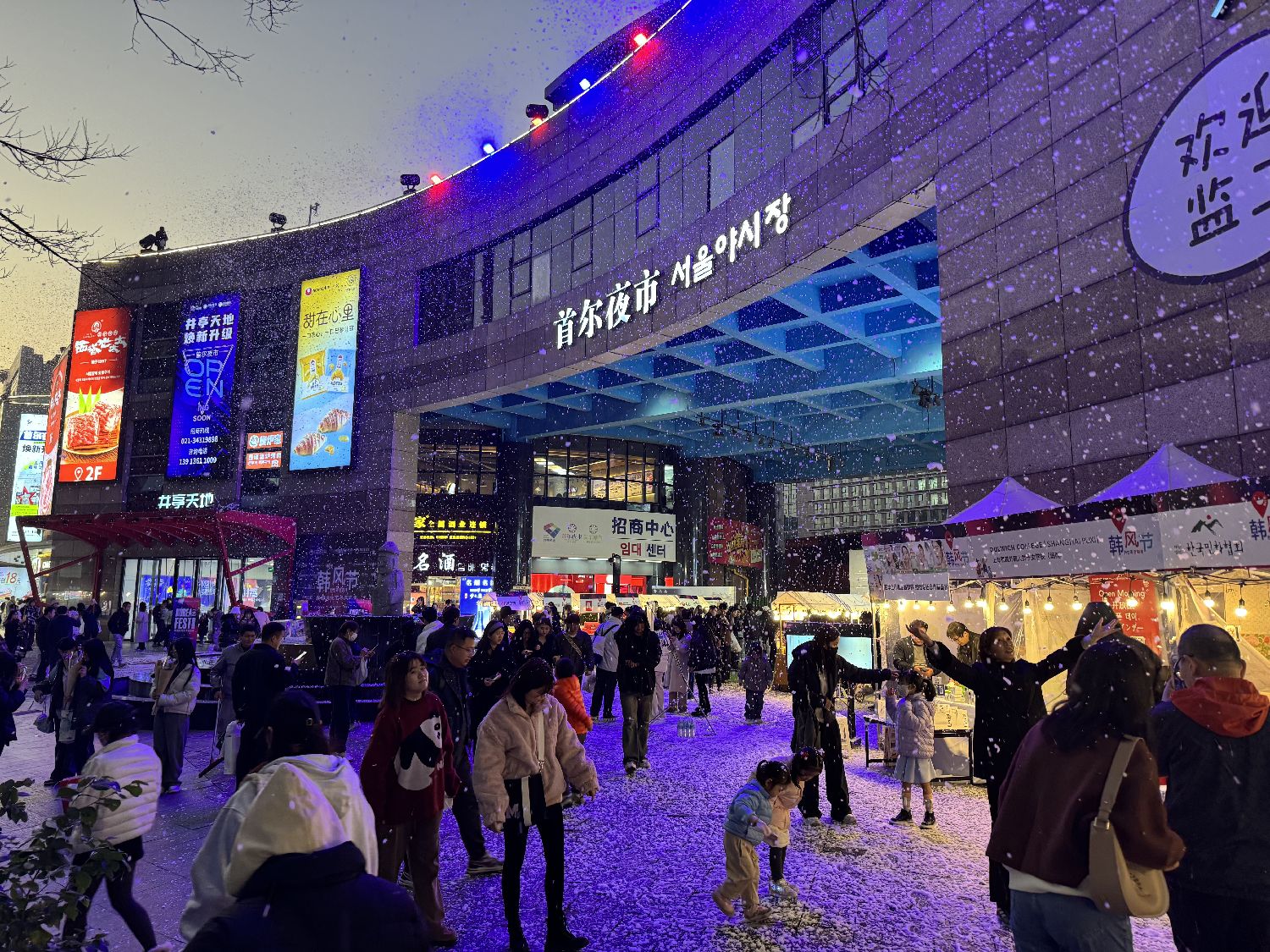 2026年年初,上海首尔夜市将整片中庭变成“冬日客厅”。(图/中新社)