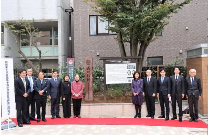 1998年为纪念周恩来总理诞辰100周年、中日和平友好条约缔结20周年,千代田区日中友协在周总理曾就读的东亚高等预备学校旧址设立周恩来纪念碑。