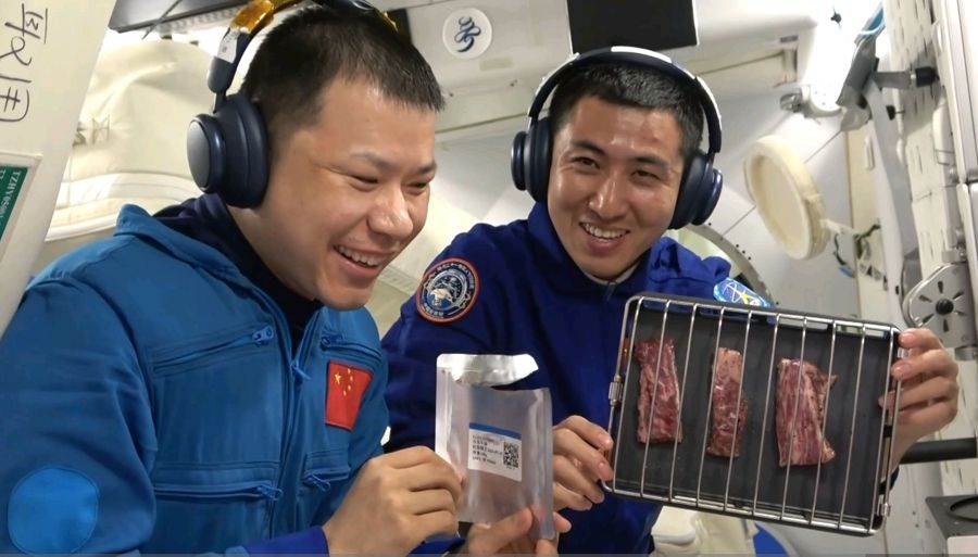 大多数人的记忆里,航天员吃饭就像“吃牙膏”,太空食品不是软管就是罐头。2025年11月,神舟二十一号乘组用带到空间站的首台太空烤箱,与神舟二十号乘组一起吃了顿烧烤,航天员第一次在太空吃到滋滋冒油、香气四溢的现烤奥尔良鸡翅和牛排。