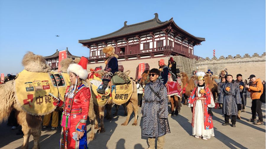 新疆东天山骆驼队亮相洛阳定鼎门 队员讲述3000公里历程