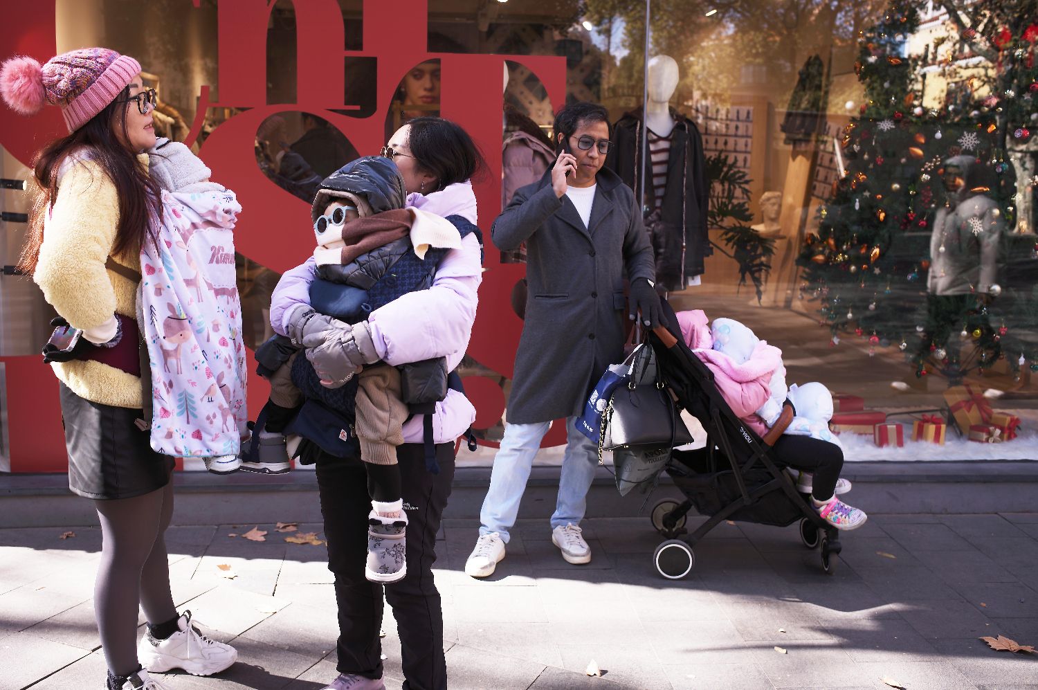 1月2日,游客带着孩子在上海武康路街头游玩,感受元旦假期生活。(图/中新社)