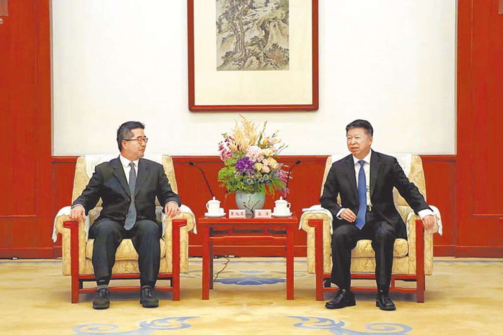 中国国民党副主席萧旭岑去年10月28日在天津会见中国国台办主任宋涛。(图/中国国台办网站)