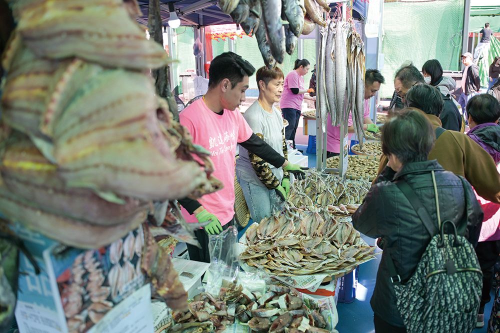 9日,民众在香港本地渔农美食嘉年华选购渔业产品。(图/中新社)