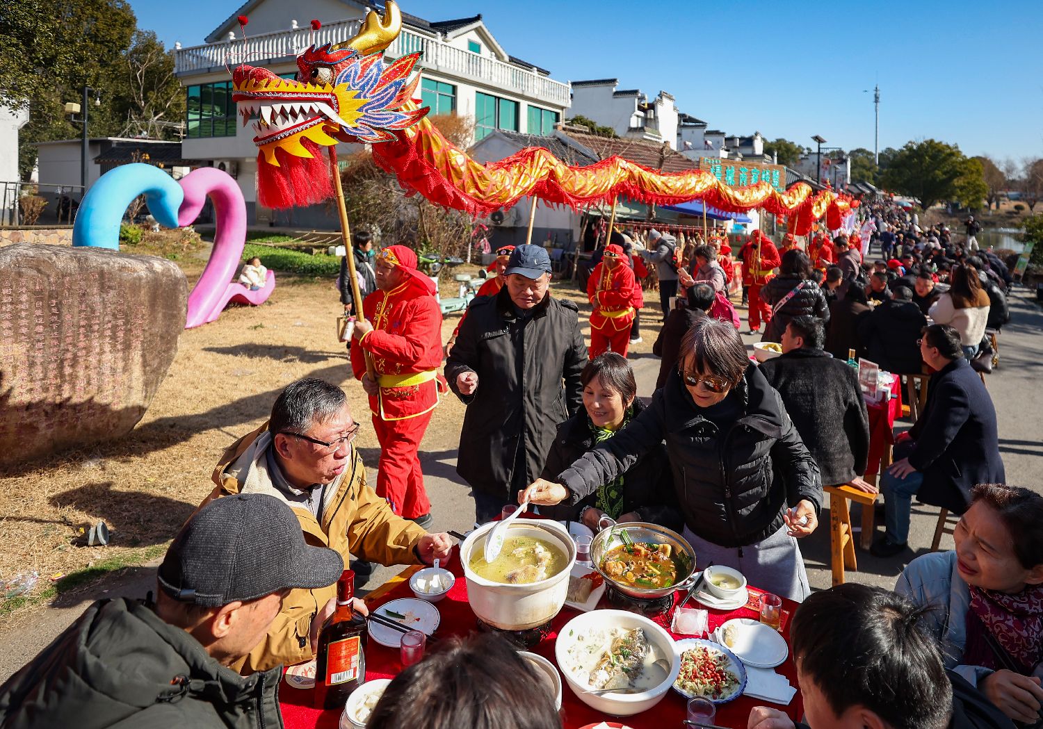 1月11日,江苏南京,高淳桠溪国际慢城长街宴热闹开席。