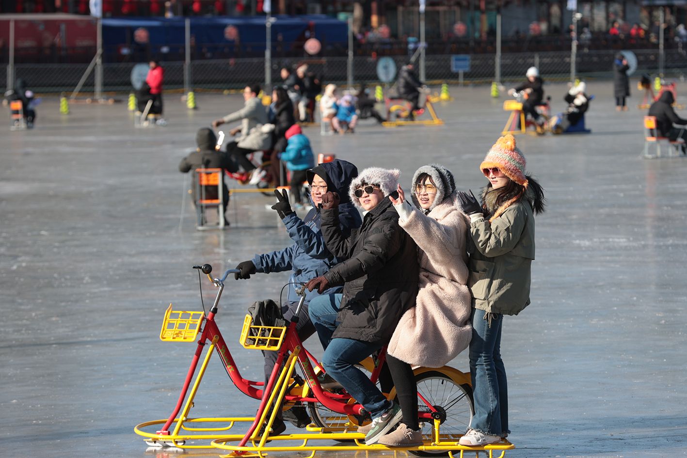 1月10日,北京什刹海冰场正式营业,游客在前海冰场内游玩。(中新社)