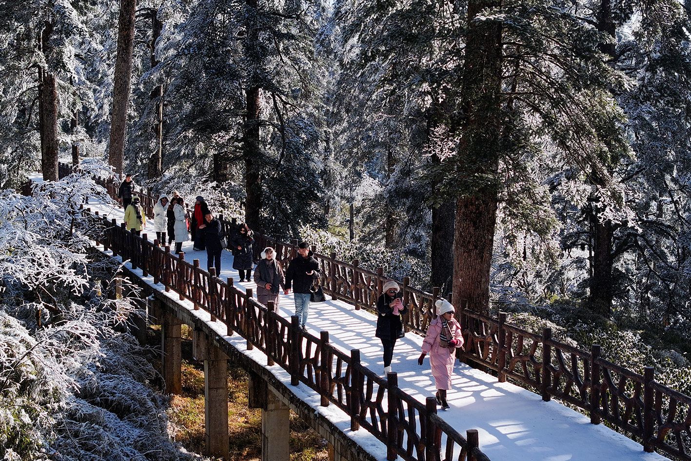 1月9日,四川省洪雅县,瓦屋山冰雪季吸引了不少游客。(中新社)