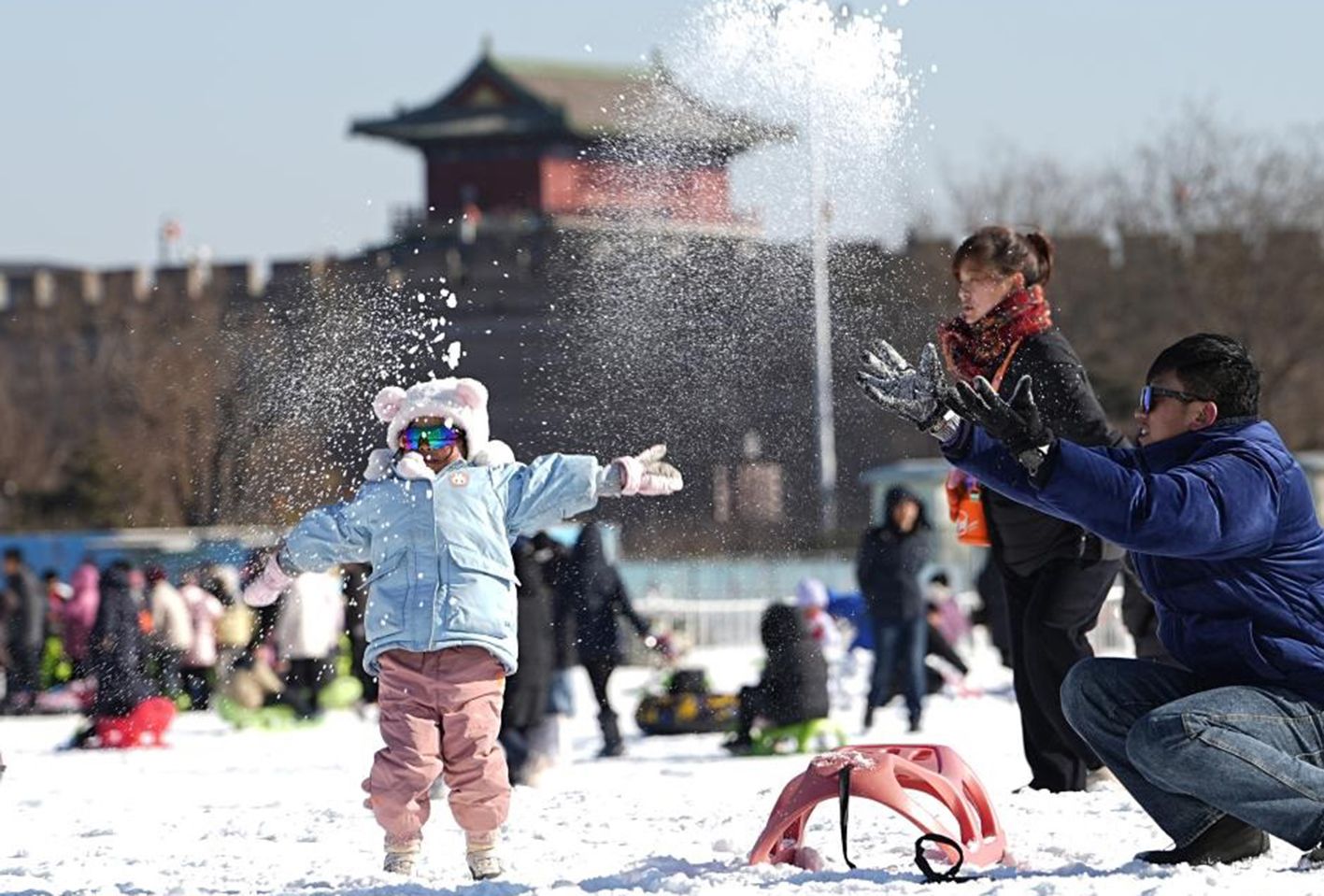 1月11日,游客在石家庄市正定县冰雪嘉年华游玩。(新华社)