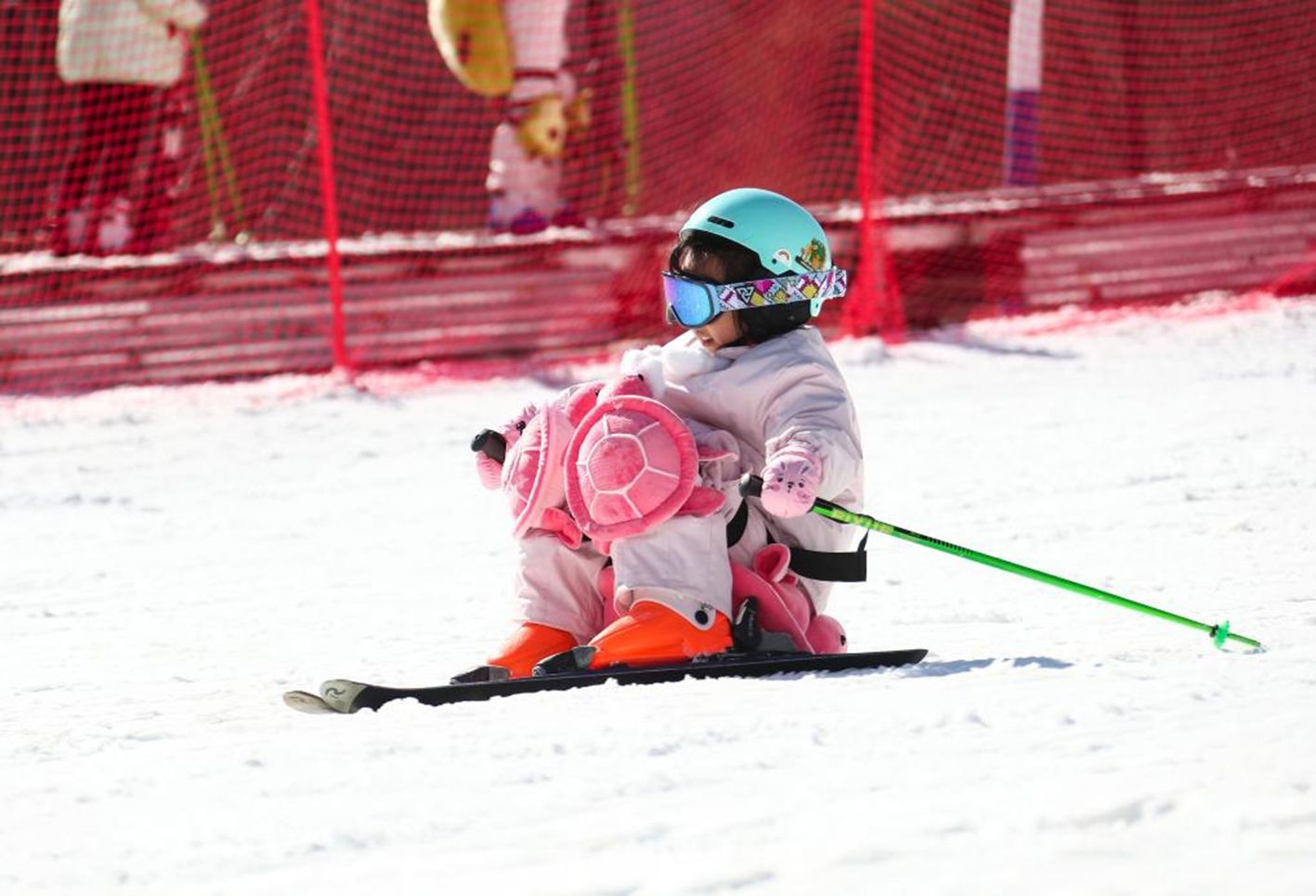 1月11日,小朋友在江苏省句容市宝华山滑雪场享受冰雪乐趣。(新华社)