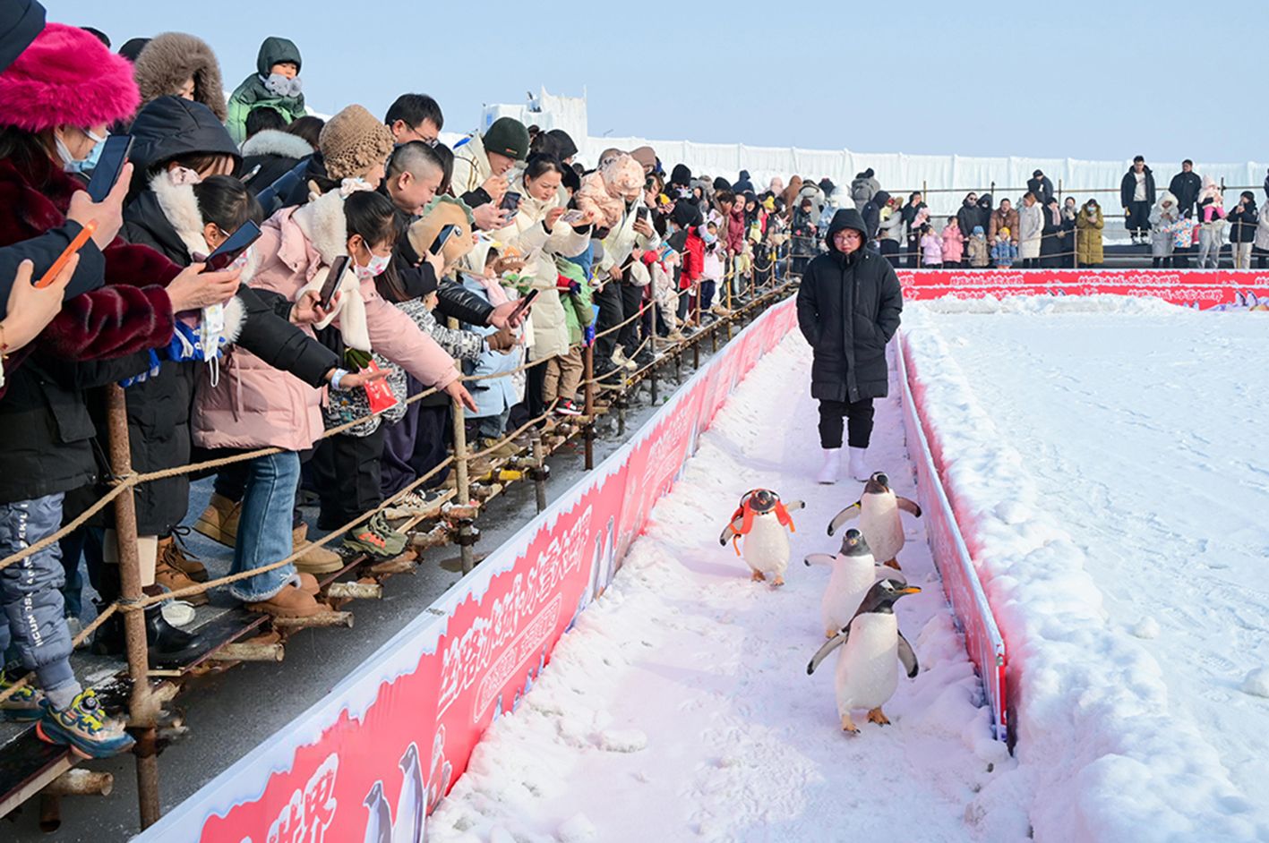 1月11日,位于新疆昌吉回族自治州昌吉市的“丝路冰城”冰雪大世界吸引众多游客。园区内不仅有精美的冰雕艺术,还设置了企鹅互动、驯鹿合影、雪地摩托、冰上自行车等二十余项冰雪娱乐体验,让游客充分感受冰雪魅力。(人民网)